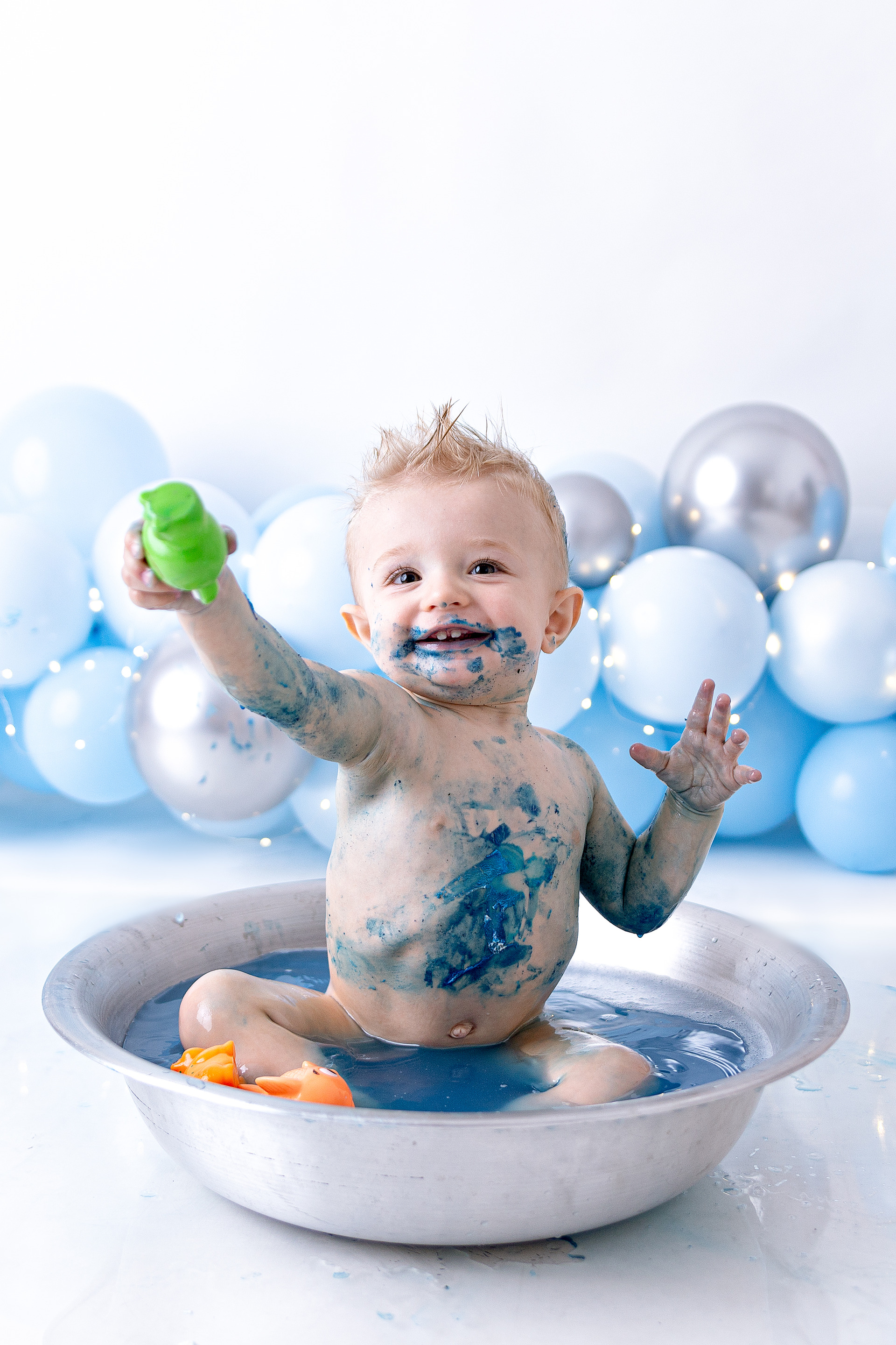 Esta uma ótima opção para comemorar o aniversário do bebê ou da criança. Muitas vezes, este é o primeiro contato do bebê com o bolinho e a graça é descobrir texturas, cores e sabores. É um ensaio extremamente fofo, confortável e que rende fotos lindas! E logo após a bagunça com o bolo, você pode optar pelo plano que inclui um delicioso banho de espuma bem quentinho e relaxante pro seu bebê!